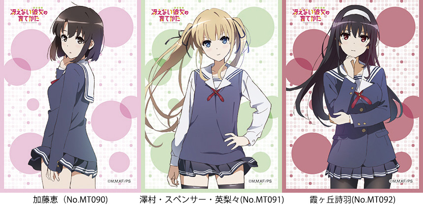 きゃらスリーブコレクションマットシリーズに「冴えない彼女の育てかた」が登場! 詳細はこちら!http://chara-supply.com/title/saekano/ 【価格】760円+税【発売日】2015年3月27日(金)発売予定【仕様】サイズ:67mm×92mm 65枚入り表面:透明 裏面:5色印刷(4色+白) メタリック仕様 日本製【品番】恵:No.MT090 英梨々:No.MT091 詩羽:No.MT092