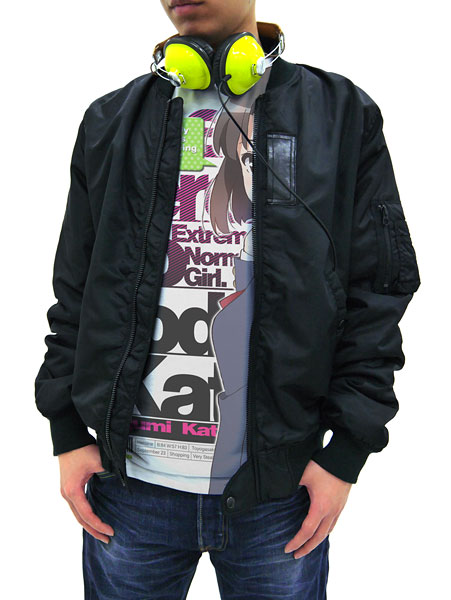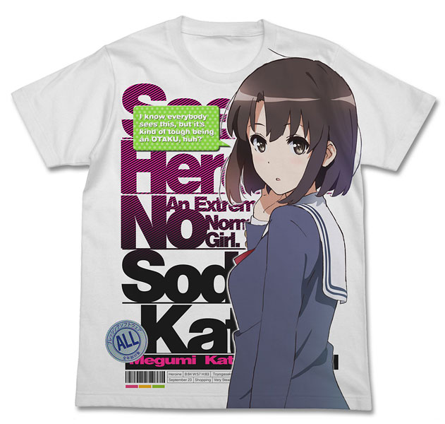 PCゲームのパッケージをイメージした背景に、『加藤恵』が大きくプリントされたフルグラフィックTシャツ。